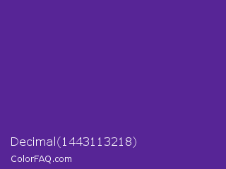 Decimal 1443113218 Color is a normal violet color and the nearest color is Daisy Bush #4f2398. Hex code #572596 and RGB value is rgb(87,37,150). In RGB color space, this color is composed of 34% red, 15% green, 59% blue, In CMYK color space, this color is composed of 42% cyan, 75% magenta, 0% yellow , 41% black , In HSL color space, this color has a hue angle of 267° , 60% saturation and 37% lightness.