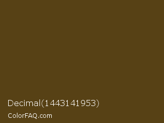 Decimal 1443141953 Color is a very dark orange color and the nearest color is Pineapple #563c0d. Hex code #574115 and RGB value is rgb(87,65,21). In RGB color space, this color is composed of 34% red, 25% green, 8% blue, In CMYK color space, this color is composed of 0% cyan, 25% magenta, 76% yellow , 66% black , In HSL color space, this color has a hue angle of 40° , 61% saturation and 21% lightness.