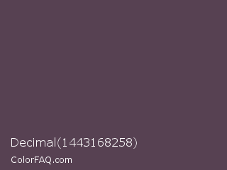 Decimal 1443168258 Color is a dark magenta color and the nearest color is Mortar #504351. Hex code #574152 and RGB value is rgb(87,65,82). In RGB color space, this color is composed of 34% red, 25% green, 32% blue, In CMYK color space, this color is composed of 0% cyan, 25% magenta, 6% yellow , 66% black , In HSL color space, this color has a hue angle of 314° , 14% saturation and 30% lightness.