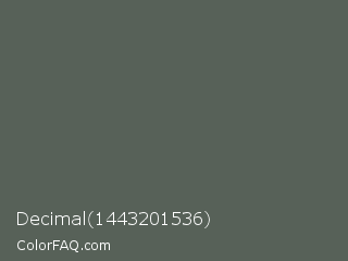 Decimal 1443201536 Color is a normal green color and the nearest color is Chicago #5d5c58. Hex code #576158 and RGB value is rgb(87,97,88). In RGB color space, this color is composed of 34% red, 38% green, 35% blue, In CMYK color space, this color is composed of 10% cyan, 0% magenta, 9% yellow , 62% black , In HSL color space, this color has a hue angle of 126° , 5% saturation and 36% lightness.