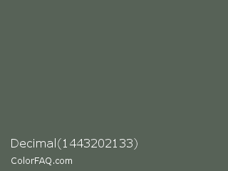 Decimal 1443202133 Color is a normal green color and the nearest color is Chicago #5d5c58. Hex code #576257 and RGB value is rgb(87,98,87). In RGB color space, this color is composed of 34% red, 38% green, 34% blue, In CMYK color space, this color is composed of 11% cyan, 0% magenta, 11% yellow , 62% black , In HSL color space, this color has a hue angle of 120° , 6% saturation and 36% lightness.