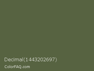 Decimal 1443202697 Color is a normal green color and the nearest color is Hemlock #5e5d3b. Hex code #576341 and RGB value is rgb(87,99,65). In RGB color space, this color is composed of 34% red, 39% green, 25% blue, In CMYK color space, this color is composed of 12% cyan, 0% magenta, 34% yellow , 61% black , In HSL color space, this color has a hue angle of 81° , 21% saturation and 32% lightness.