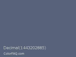 Decimal 1443202885 Color is a normal blue color and the nearest color is Paynes Grey #536878. Hex code #576379 and RGB value is rgb(87,99,121). In RGB color space, this color is composed of 34% red, 39% green, 47% blue, In CMYK color space, this color is composed of 28% cyan, 18% magenta, 0% yellow , 53% black , In HSL color space, this color has a hue angle of 219° , 16% saturation and 41% lightness.