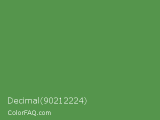 Decimal 90212224 Color is a normal green color and the nearest color is May Green #4c9141. Hex code #55954c and RGB value is rgb(85,149,76). In RGB color space, this color is composed of 33% red, 58% green, 30% blue, In CMYK color space, this color is composed of 43% cyan, 0% magenta, 49% yellow , 42% black , In HSL color space, this color has a hue angle of 113° , 32% saturation and 44% lightness.