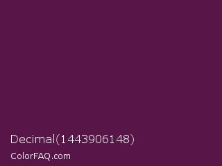 Decimal 1443906148 Color is a very dark magenta color and the nearest color is Wine Berry #591d35. Hex code #581548 and RGB value is rgb(88,21,72). In RGB color space, this color is composed of 35% red, 8% green, 28% blue, In CMYK color space, this color is composed of 0% cyan, 76% magenta, 18% yellow , 65% black , In HSL color space, this color has a hue angle of 314° , 61% saturation and 21% lightness.