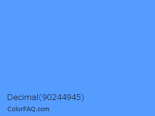 Decimal 90244945 Color is a light blue color and the nearest color is Blueberry #4f86f7. Hex code #559cff and RGB value is rgb(85,156,255). In RGB color space, this color is composed of 33% red, 61% green, 100% blue, In CMYK color space, this color is composed of 67% cyan, 39% magenta, 0% yellow , 0% black , In HSL color space, this color has a hue angle of 215° , 100% saturation and 67% lightness.