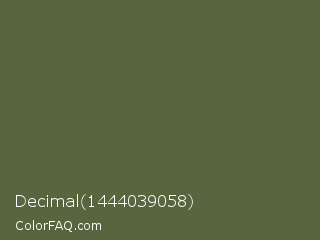 Decimal 1444039058 Color is a normal green color and the nearest color is Chalet Green #516e3d. Hex code #586640 and RGB value is rgb(88,102,64). In RGB color space, this color is composed of 35% red, 40% green, 25% blue, In CMYK color space, this color is composed of 14% cyan, 0% magenta, 37% yellow , 60% black , In HSL color space, this color has a hue angle of 82° , 23% saturation and 33% lightness.
