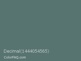 Decimal 1444054565 Color is a normal cyan color and the nearest color is Cutty Sark #507672. Hex code #587471 and RGB value is rgb(88,116,113). In RGB color space, this color is composed of 35% red, 45% green, 44% blue, In CMYK color space, this color is composed of 24% cyan, 0% magenta, 3% yellow , 55% black , In HSL color space, this color has a hue angle of 174° , 14% saturation and 40% lightness.