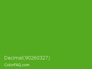 Decimal 90260327 Color is a normal green color and the nearest color is Kelly Green #4cbb17. Hex code #55ab1f and RGB value is rgb(85,171,31). In RGB color space, this color is composed of 33% red, 67% green, 12% blue, In CMYK color space, this color is composed of 50% cyan, 0% magenta, 82% yellow , 33% black , In HSL color space, this color has a hue angle of 97° , 69% saturation and 40% lightness.