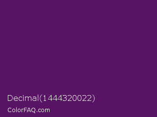 Decimal 1444320022 Color is a dark magenta color and the nearest color is Honey Flower #4f1c70. Hex code #591364 and RGB value is rgb(89,19,100). In RGB color space, this color is composed of 35% red, 7% green, 39% blue, In CMYK color space, this color is composed of 11% cyan, 81% magenta, 0% yellow , 61% black , In HSL color space, this color has a hue angle of 292° , 68% saturation and 23% lightness.