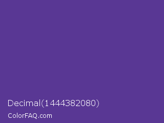 Decimal 1444382080 Color is a normal violet color and the nearest color is Blue Magenta Violet #553592. Hex code #593794 and RGB value is rgb(89,55,148). In RGB color space, this color is composed of 35% red, 22% green, 58% blue, In CMYK color space, this color is composed of 40% cyan, 63% magenta, 0% yellow , 42% black , In HSL color space, this color has a hue angle of 262° , 46% saturation and 40% lightness.