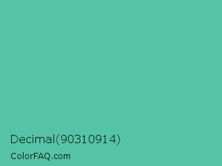 Decimal 90310914 Color is a normal cyan color and the nearest color is Tradewind #5fb3ac. Hex code #55c4a6 and RGB value is rgb(85,196,166). In RGB color space, this color is composed of 33% red, 77% green, 65% blue, In CMYK color space, this color is composed of 57% cyan, 0% magenta, 15% yellow , 23% black , In HSL color space, this color has a hue angle of 164° , 48% saturation and 55% lightness.