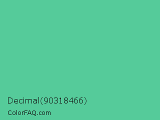 Decimal 90318466 Color is a normal green color and the nearest color is Ocean Green #48bf91. Hex code #55cb9a and RGB value is rgb(85,203,154). In RGB color space, this color is composed of 33% red, 80% green, 60% blue, In CMYK color space, this color is composed of 58% cyan, 0% magenta, 24% yellow , 20% black , In HSL color space, this color has a hue angle of 155° , 53% saturation and 56% lightness.