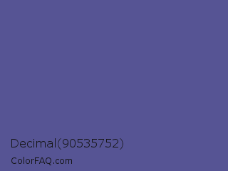 Decimal 90535752 Color is a normal indigo color and the nearest color is Butterfly Bush #624e9a. Hex code #565494 and RGB value is rgb(86,84,148). In RGB color space, this color is composed of 34% red, 33% green, 58% blue, In CMYK color space, this color is composed of 42% cyan, 43% magenta, 0% yellow , 42% black , In HSL color space, this color has a hue angle of 242° , 28% saturation and 45% lightness.