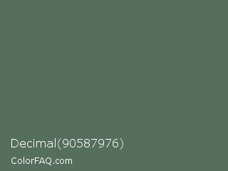 Decimal 90587976 Color is a normal green color and the nearest color is Finlandia #556d56. Hex code #566e5c and RGB value is rgb(86,110,92). In RGB color space, this color is composed of 34% red, 43% green, 36% blue, In CMYK color space, this color is composed of 22% cyan, 0% magenta, 16% yellow , 57% black , In HSL color space, this color has a hue angle of 135° , 12% saturation and 38% lightness.