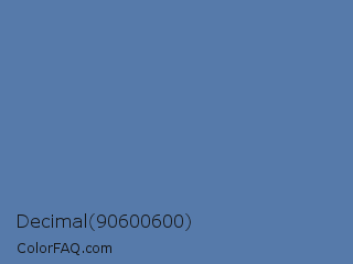 Decimal 90600600 Color is a normal blue color and the nearest color is Blue Yonder #5072a7. Hex code #567aaa and RGB value is rgb(86,122,170). In RGB color space, this color is composed of 34% red, 48% green, 67% blue, In CMYK color space, this color is composed of 49% cyan, 28% magenta, 0% yellow , 33% black , In HSL color space, this color has a hue angle of 214° , 33% saturation and 50% lightness.