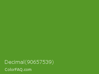 Decimal 90657539 Color is a normal green color and the nearest color is Vida Loca #549019. Hex code #569927 and RGB value is rgb(86,153,39). In RGB color space, this color is composed of 34% red, 60% green, 15% blue, In CMYK color space, this color is composed of 44% cyan, 0% magenta, 75% yellow , 40% black , In HSL color space, this color has a hue angle of 95° , 59% saturation and 38% lightness.