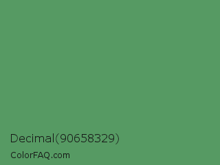 Decimal 90658329 Color is a normal green color and the nearest color is Fruit Salad #4f9d5d. Hex code #569a63 and RGB value is rgb(86,154,99). In RGB color space, this color is composed of 34% red, 60% green, 39% blue, In CMYK color space, this color is composed of 44% cyan, 0% magenta, 36% yellow , 40% black , In HSL color space, this color has a hue angle of 131° , 28% saturation and 47% lightness.