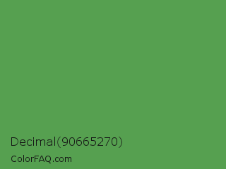 Decimal 90665270 Color is a normal green color and the nearest color is Fruit Salad #4f9d5d. Hex code #56a050 and RGB value is rgb(86,160,80). In RGB color space, this color is composed of 34% red, 63% green, 31% blue, In CMYK color space, this color is composed of 46% cyan, 0% magenta, 50% yellow , 37% black , In HSL color space, this color has a hue angle of 116° , 33% saturation and 47% lightness.