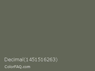 Decimal 1451516263 Color is a normal lime color and the nearest color is Siam #646a54. Hex code #636757 and RGB value is rgb(99,103,87). In RGB color space, this color is composed of 39% red, 40% green, 34% blue, In CMYK color space, this color is composed of 4% cyan, 0% magenta, 16% yellow , 60% black , In HSL color space, this color has a hue angle of 75° , 8% saturation and 37% lightness.