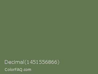 Decimal 1451556866 Color is a normal green color and the nearest color is Willow Grove #65745d. Hex code #637652 and RGB value is rgb(99,118,82). In RGB color space, this color is composed of 39% red, 46% green, 32% blue, In CMYK color space, this color is composed of 16% cyan, 0% magenta, 31% yellow , 54% black , In HSL color space, this color has a hue angle of 92° , 18% saturation and 39% lightness.