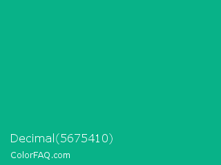 Decimal 5675410 Color is a normal cyan color and the nearest color is Niagara #06a189. Hex code #08b288 and RGB value is rgb(8,178,136). In RGB color space, this color is composed of 3% red, 70% green, 53% blue, In CMYK color space, this color is composed of 96% cyan, 0% magenta, 24% yellow , 30% black , In HSL color space, this color has a hue angle of 165° , 91% saturation and 36% lightness.