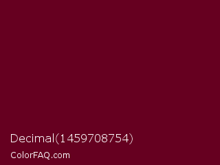 Decimal 1459708754 Color is a very dark rose color and the nearest color is Bordeaux #5c0120. Hex code #660020 and RGB value is rgb(102,0,32). In RGB color space, this color is composed of 40% red, 0% green, 13% blue, In CMYK color space, this color is composed of 0% cyan, 100% magenta, 69% yellow , 60% black , In HSL color space, this color has a hue angle of 341° , 100% saturation and 20% lightness.