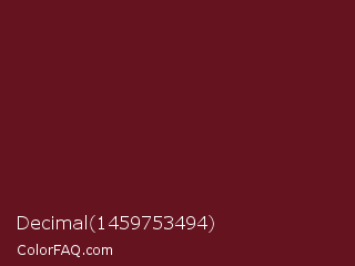 Decimal 1459753494 Color is a dark red color and the nearest color is Cherrywood #651a14. Hex code #661320 and RGB value is rgb(102,19,32). In RGB color space, this color is composed of 40% red, 7% green, 13% blue, In CMYK color space, this color is composed of 0% cyan, 81% magenta, 69% yellow , 60% black , In HSL color space, this color has a hue angle of 351° , 69% saturation and 24% lightness.