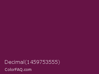 Decimal 1459753555 Color is a dark magenta color and the nearest color is Tawny Port #692545. Hex code #661345 and RGB value is rgb(102,19,69). In RGB color space, this color is composed of 40% red, 7% green, 27% blue, In CMYK color space, this color is composed of 0% cyan, 81% magenta, 32% yellow , 60% black , In HSL color space, this color has a hue angle of 324° , 69% saturation and 24% lightness.