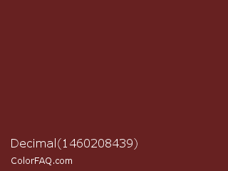 Decimal 1460208439 Color is a dark red color and the nearest color is Persian Plum #701c1c. Hex code #672121 and RGB value is rgb(103,33,33). In RGB color space, this color is composed of 40% red, 13% green, 13% blue, In CMYK color space, this color is composed of 0% cyan, 68% magenta, 68% yellow , 60% black , In HSL color space, this color has a hue angle of 0° , 51% saturation and 27% lightness.