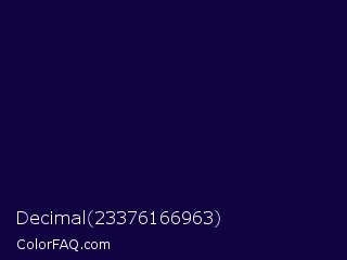 Decimal 23376166963 Color is a very dark indigo color and the nearest color is Tolopea #1b0245. Hex code #110241 and RGB value is rgb(17,2,65). In RGB color space, this color is composed of 7% red, 1% green, 25% blue, In CMYK color space, this color is composed of 74% cyan, 97% magenta, 0% yellow , 75% black , In HSL color space, this color has a hue angle of 254° , 94% saturation and 13% lightness.