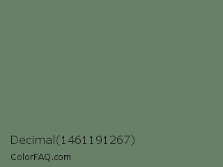 Decimal 1461191267 Color is a normal green color and the nearest color is Glade Green #61845f. Hex code #688067 and RGB value is rgb(104,128,103). In RGB color space, this color is composed of 41% red, 50% green, 40% blue, In CMYK color space, this color is composed of 19% cyan, 0% magenta, 20% yellow , 50% black , In HSL color space, this color has a hue angle of 118° , 11% saturation and 45% lightness.