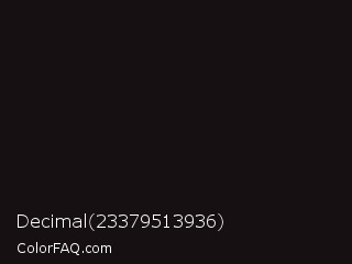 Decimal 23379513936 Color is a almost black rose color and the nearest color is Licorice #1a1110. Hex code #161012 and RGB value is rgb(22,16,18). In RGB color space, this color is composed of 9% red, 6% green, 7% blue, In CMYK color space, this color is composed of 0% cyan, 27% magenta, 18% yellow , 91% black , In HSL color space, this color has a hue angle of 340° , 16% saturation and 7% lightness.