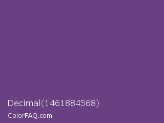 Decimal 1461884568 Color is a normal purple color and the nearest color is Eminence #6c3082. Hex code #694182 and RGB value is rgb(105,65,130). In RGB color space, this color is composed of 41% red, 25% green, 51% blue, In CMYK color space, this color is composed of 19% cyan, 50% magenta, 0% yellow , 49% black , In HSL color space, this color has a hue angle of 277° , 33% saturation and 38% lightness.
