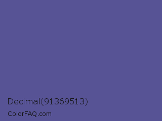 Decimal 91369513 Color is a normal indigo color and the nearest color is Butterfly Bush #624e9a. Hex code #575395 and RGB value is rgb(87,83,149). In RGB color space, this color is composed of 34% red, 33% green, 58% blue, In CMYK color space, this color is composed of 42% cyan, 44% magenta, 0% yellow , 42% black , In HSL color space, this color has a hue angle of 244° , 28% saturation and 45% lightness.