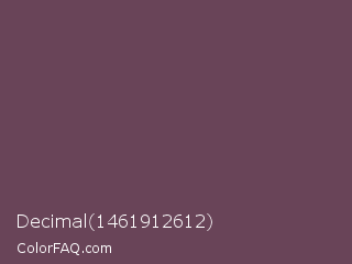 Decimal 1461912612 Color is a normal rose color and the nearest color is Eggplant #614051. Hex code #694458 and RGB value is rgb(105,68,88). In RGB color space, this color is composed of 41% red, 27% green, 35% blue, In CMYK color space, this color is composed of 0% cyan, 35% magenta, 16% yellow , 59% black , In HSL color space, this color has a hue angle of 328° , 21% saturation and 34% lightness.