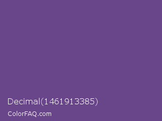 Decimal 1461913385 Color is a normal purple color and the nearest color is Affair #714693. Hex code #694589 and RGB value is rgb(105,69,137). In RGB color space, this color is composed of 41% red, 27% green, 54% blue, In CMYK color space, this color is composed of 23% cyan, 50% magenta, 0% yellow , 46% black , In HSL color space, this color has a hue angle of 272° , 33% saturation and 40% lightness.