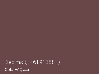 Decimal 1461913881 Color is a normal red color and the nearest color is Rose Ebony #674846. Hex code #694647 and RGB value is rgb(105,70,71). In RGB color space, this color is composed of 41% red, 27% green, 28% blue, In CMYK color space, this color is composed of 0% cyan, 33% magenta, 32% yellow , 59% black , In HSL color space, this color has a hue angle of 358° , 20% saturation and 34% lightness.
