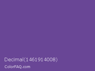 Decimal 1461914008 Color is a normal violet color and the nearest color is Affair #714693. Hex code #694696 and RGB value is rgb(105,70,150). In RGB color space, this color is composed of 41% red, 27% green, 59% blue, In CMYK color space, this color is composed of 30% cyan, 53% magenta, 0% yellow , 41% black , In HSL color space, this color has a hue angle of 266° , 36% saturation and 43% lightness.