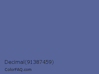 Decimal 91387459 Color is a normal blue color and the nearest color is UCLA Blue #536895. Hex code #57659b and RGB value is rgb(87,101,155). In RGB color space, this color is composed of 34% red, 40% green, 61% blue, In CMYK color space, this color is composed of 44% cyan, 35% magenta, 0% yellow , 39% black , In HSL color space, this color has a hue angle of 228° , 28% saturation and 47% lightness.