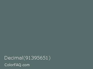 Decimal 91395651 Color is a normal cyan color and the nearest color is Cadet #536872. Hex code #576d6b and RGB value is rgb(87,109,107). In RGB color space, this color is composed of 34% red, 43% green, 42% blue, In CMYK color space, this color is composed of 20% cyan, 0% magenta, 2% yellow , 57% black , In HSL color space, this color has a hue angle of 175° , 11% saturation and 38% lightness.