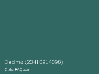 Decimal 23410914098 Color is a dark cyan color and the nearest color is Casal #2f6168. Hex code #316864 and RGB value is rgb(49,104,100). In RGB color space, this color is composed of 19% red, 41% green, 39% blue, In CMYK color space, this color is composed of 53% cyan, 0% magenta, 4% yellow , 59% black , In HSL color space, this color has a hue angle of 176° , 36% saturation and 30% lightness.