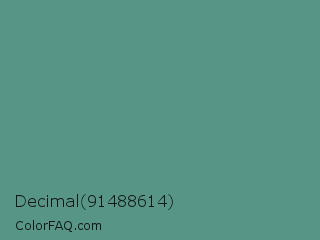 Decimal 91488614 Color is a normal cyan color and the nearest color is Steel Teal #5f8a8b. Hex code #579686 and RGB value is rgb(87,150,134). In RGB color space, this color is composed of 34% red, 59% green, 53% blue, In CMYK color space, this color is composed of 42% cyan, 0% magenta, 11% yellow , 41% black , In HSL color space, this color has a hue angle of 165° , 27% saturation and 46% lightness.