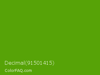 Decimal 91501415 Color is a normal green color and the nearest color is Christi #67a712. Hex code #57a307 and RGB value is rgb(87,163,7). In RGB color space, this color is composed of 34% red, 64% green, 3% blue, In CMYK color space, this color is composed of 47% cyan, 0% magenta, 96% yellow , 36% black , In HSL color space, this color has a hue angle of 89° , 92% saturation and 33% lightness.
