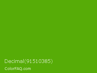 Decimal 91510385 Color is a normal green color and the nearest color is Christi #67a712. Hex code #57ac07 and RGB value is rgb(87,172,7). In RGB color space, this color is composed of 34% red, 67% green, 3% blue, In CMYK color space, this color is composed of 49% cyan, 0% magenta, 96% yellow , 33% black , In HSL color space, this color has a hue angle of 91° , 92% saturation and 35% lightness.