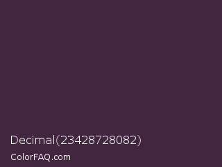 Decimal 23428728082 Color is a very dark magenta color and the nearest color is Blackcurrant #32293a. Hex code #422640 and RGB value is rgb(66,38,64). In RGB color space, this color is composed of 26% red, 15% green, 25% blue, In CMYK color space, this color is composed of 0% cyan, 42% magenta, 3% yellow , 74% black , In HSL color space, this color has a hue angle of 304° , 27% saturation and 20% lightness.