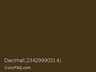 Decimal 23429990514 Color is a very dark orange color and the nearest color is Metallic Bronze #49371b. Hex code #443318 and RGB value is rgb(68,51,24). In RGB color space, this color is composed of 27% red, 20% green, 9% blue, In CMYK color space, this color is composed of 0% cyan, 25% magenta, 65% yellow , 73% black , In HSL color space, this color has a hue angle of 37° , 48% saturation and 18% lightness.