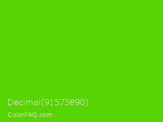 Decimal 91575890 Color is a normal green color and the nearest color is Harlequin Green #46cb18. Hex code #57d304 and RGB value is rgb(87,211,4). In RGB color space, this color is composed of 34% red, 83% green, 2% blue, In CMYK color space, this color is composed of 59% cyan, 0% magenta, 98% yellow , 17% black , In HSL color space, this color has a hue angle of 96° , 96% saturation and 42% lightness.