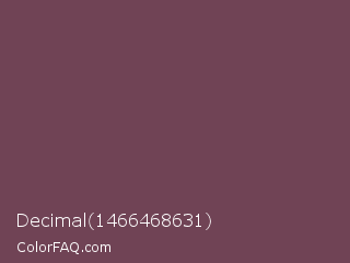 Decimal 1466468631 Color is a normal rose color and the nearest color is Deep Tuscan Red #66424d. Hex code #704355 and RGB value is rgb(112,67,85). In RGB color space, this color is composed of 44% red, 26% green, 33% blue, In CMYK color space, this color is composed of 0% cyan, 40% magenta, 24% yellow , 56% black , In HSL color space, this color has a hue angle of 336° , 25% saturation and 35% lightness.