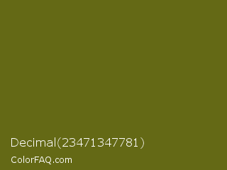 Decimal 23471347781 Color is a dark yellow color and the nearest color is Fern Frond #657220. Hex code #646915 and RGB value is rgb(100,105,21). In RGB color space, this color is composed of 39% red, 41% green, 8% blue, In CMYK color space, this color is composed of 5% cyan, 0% magenta, 80% yellow , 59% black , In HSL color space, this color has a hue angle of 64° , 67% saturation and 25% lightness.